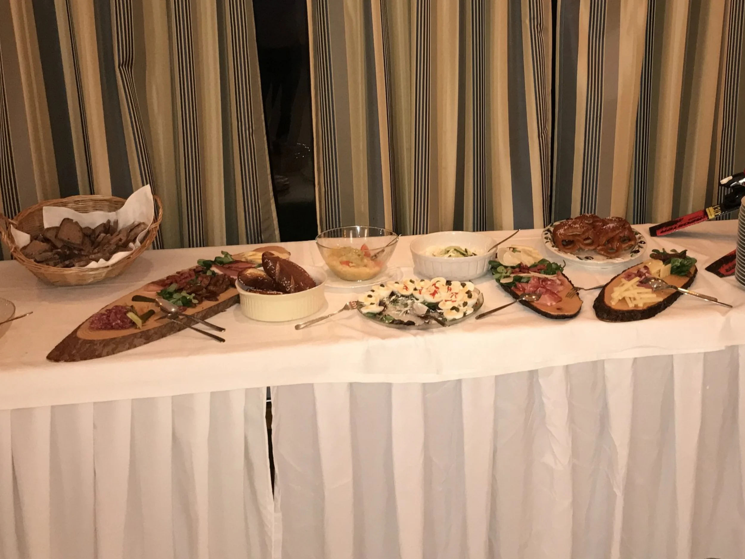 Für die feierfreudigen Spieler und denen, die am Abend noch dazu kamen, ging der Spaß im Verein noch weiter. Unser Gastronom Uli hatte ein tolles Buffet auf die Beine gestellt, welches ab 20 Uhr eröffnet wurde. Gemäß dem Motto Après - Ski verwöhnte er uns natürlich mit österreichischen Spezialitäten aus der Skihütte. Es gab neben Bergkäse und Hüttenspeck, eine leckere Frittatensuppe und Kren - Dip mit warmen Brezeln. So gestärkt konnte die Party beginnen.