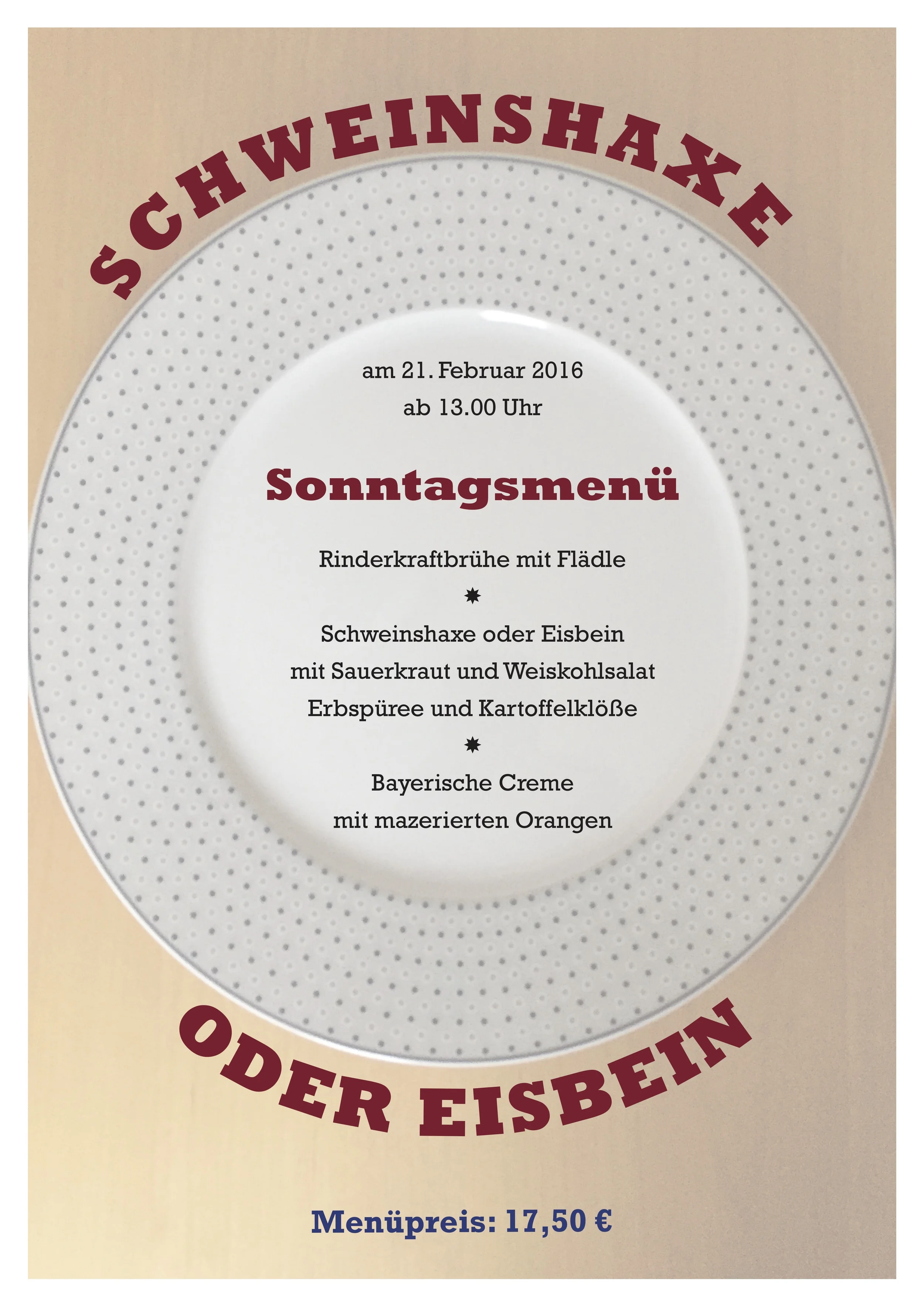 Ab 13:00 Uhr offeriert Uli sein 3-Gänge Sonntagsmenü, siehe Abbildung.
